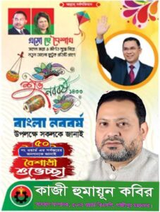 শুভ নববর্ষ—সবার জীবনে বয়ে আনুক সুখ, শান্তি ও ভালোবাসার বার্তা। শুভেচ্ছান্তে, কাজী হুমায়ূন কবির। সাধারণ সম্পাদক, ৫০ নং ওয়ার্ড বিএনপি, টঙ্গী পূর্ব থানা।