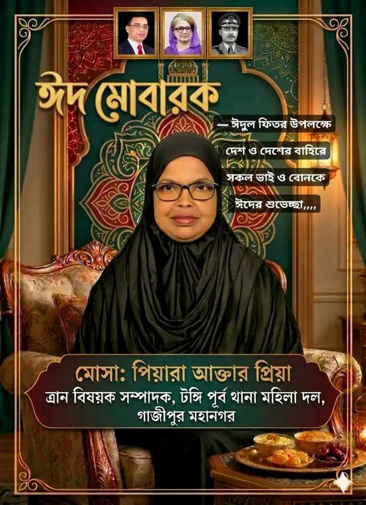 ঈদ মোবারক: টঙ্গীর মানুষের জন্য পিয়ারা আক্তার প্রিয়ার আন্তরিক শুভেচ্ছা