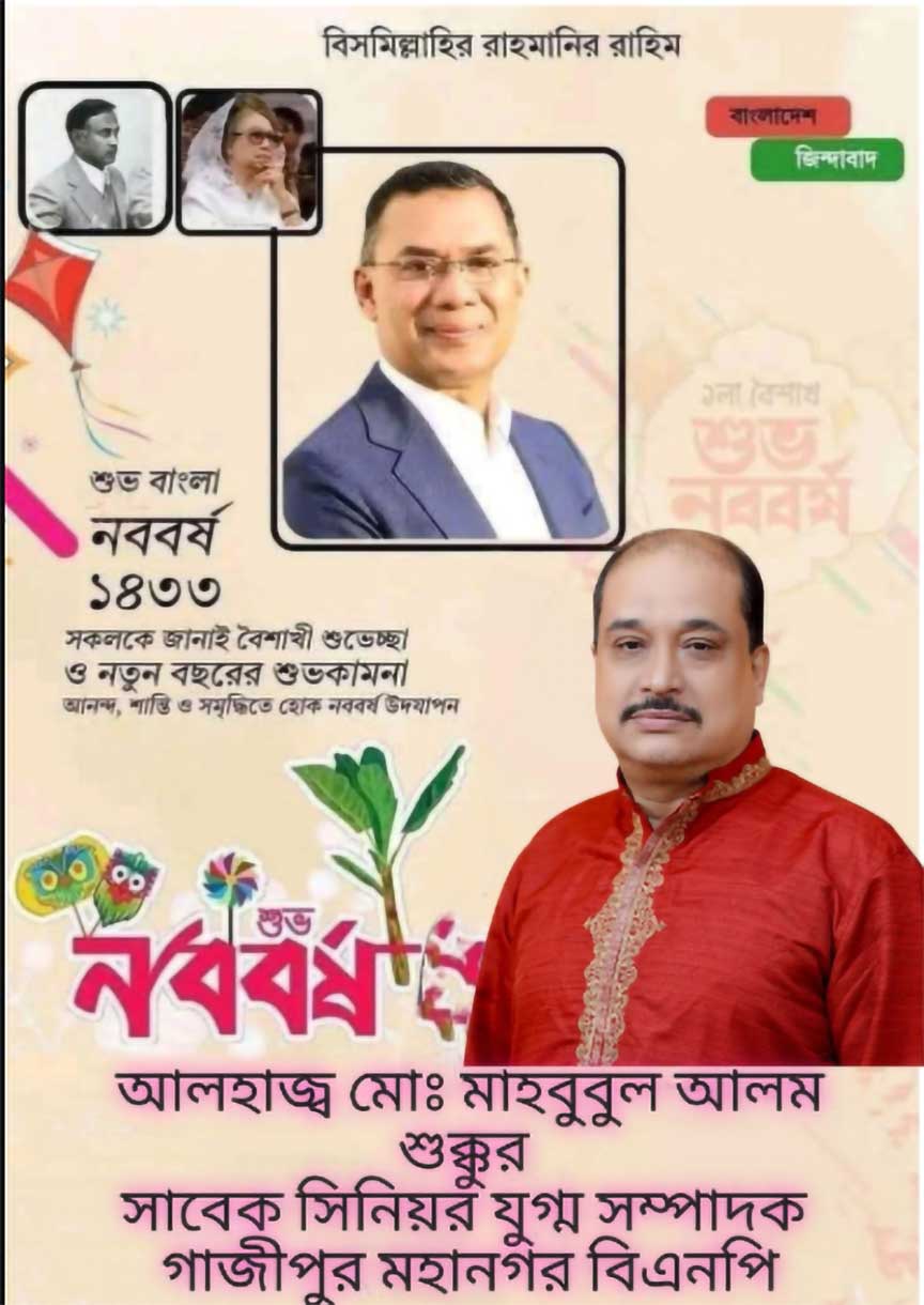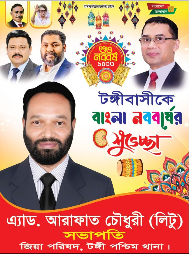 বাংলাদেশ জিন্দাবাদ যুব ঐক্য, প্রগতি ও অগ্রযাত্রার প্রত্যয় শুভ নববর্ষ ১৪৩৩ বঙ্গাব্দ গাজীপুর মহানগরসহ টঙ্গী পূর্ব থানা এলাকাজুড়ে এক নতুন